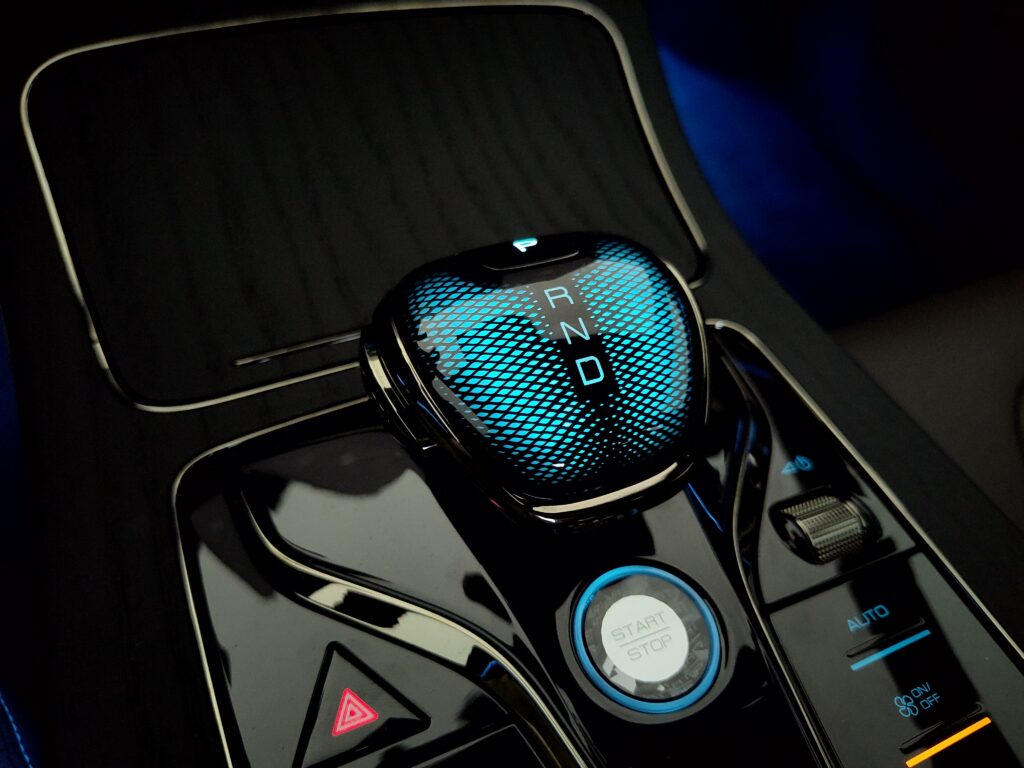 Há detalhes que dão ainda mais classe e distinção ao interior como a tela de leds à frente do passageiro dianteiro, cuja cor varia de acordo com o tom escolhido na central multimídia. A parte superior do joystick mantém um tom azul, retroiluminado, que dá destaque a peça. Muito sofisticado.