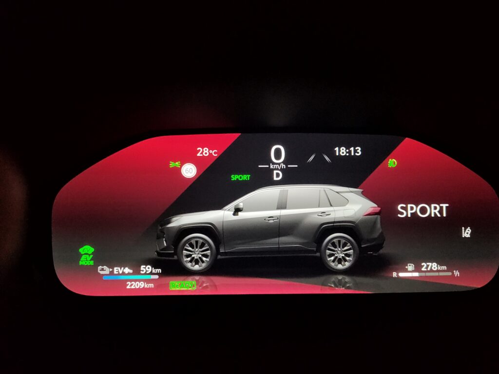 E, conduzir um SUV tão bem acertado quanto um RAV4 em um modo 100% elétrico, é um caso à parte! Combinou demais com a proposta do carro e levou o modelo a outro patamar. Inclusive recomendamos que ao adquirir seu RAV4 PHEV mantenha ao quanto puder a bateria com bom nível de carga para poder usufruir da condução elétrica nesse carro! Silencio, e torque imediato sob o pedal do acelerador vão te fazer esquecer que ali embaixo do capô habita ainda um motor a combustão.